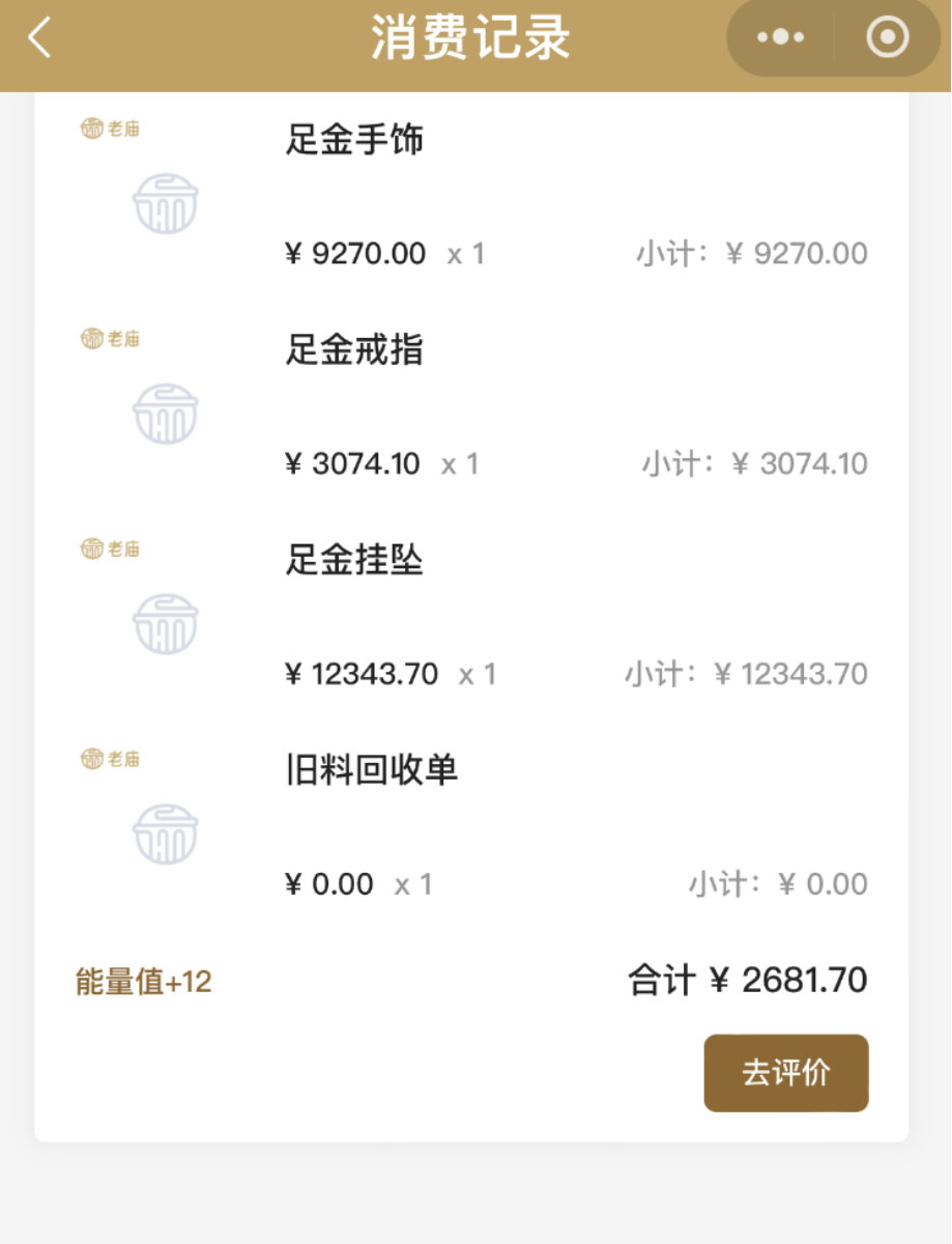 (李女士的部分“以旧换新”黄金饰品消费记录,来源:受访者提供)