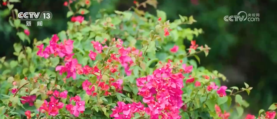不同于北方秋日的层林尽染,这里的秋多了几分独有的鲜活暖意。漫步悠然园段步道,最先闯入视野的是成片热烈盛放的三角梅,4万多株三角梅沿着步道护栏蜿蜒铺开,即便已过盛夏,花瓣依旧饱满鲜亮。