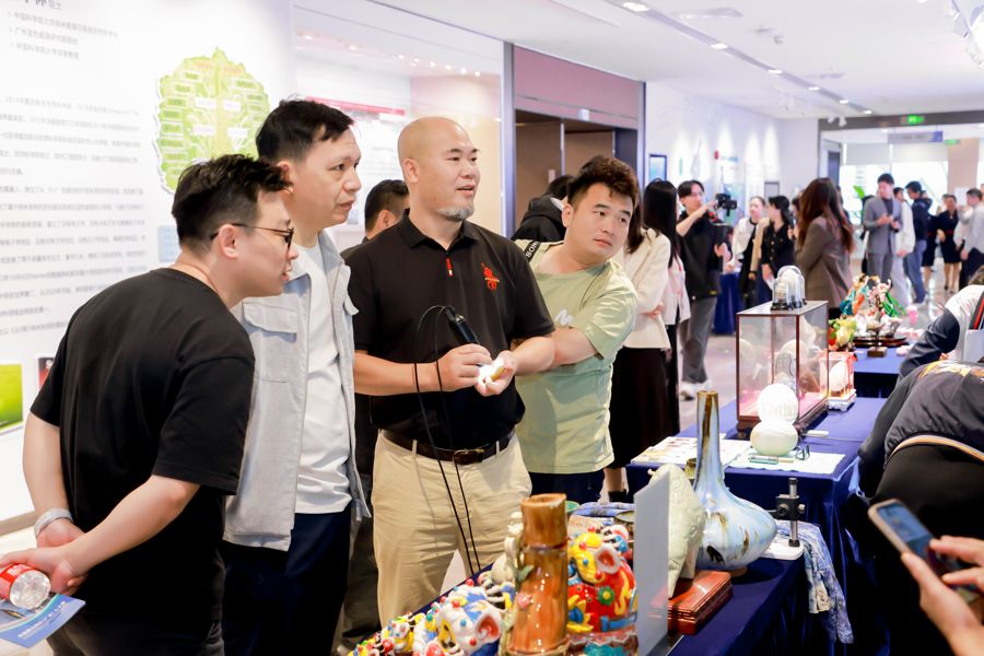 文化科技区带来全感VR体验,营造冰雪幻境的震撼效果;非遗产业区集中展示“墩头蓝”纺织技艺、雷州仿生菠萝窑陶瓷等传统工艺,多位技能大师现场展出西村窑制瓷、陶瓷微书、面塑、蛋雕等绝活;电影空间区以粤产电影海报为线索,勾勒广东影视创作的发展脉络;潮玩IP区集结四喜财神、十五运会吉祥物“喜洋洋”“乐融融”等本土原创IP,构建年轻人热衷的打卡互动空间;动漫游戏区聚焦粤产内容创新,打造融合本土基因与潮流元素的沉浸式体验场景。