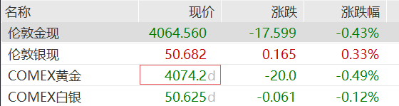 贵金属方面,金价继续调整,现货黄金跌0.43%,报4062.56美元/盎司。COMEX黄金期货跌0.49%报4074.2美元/盎司。