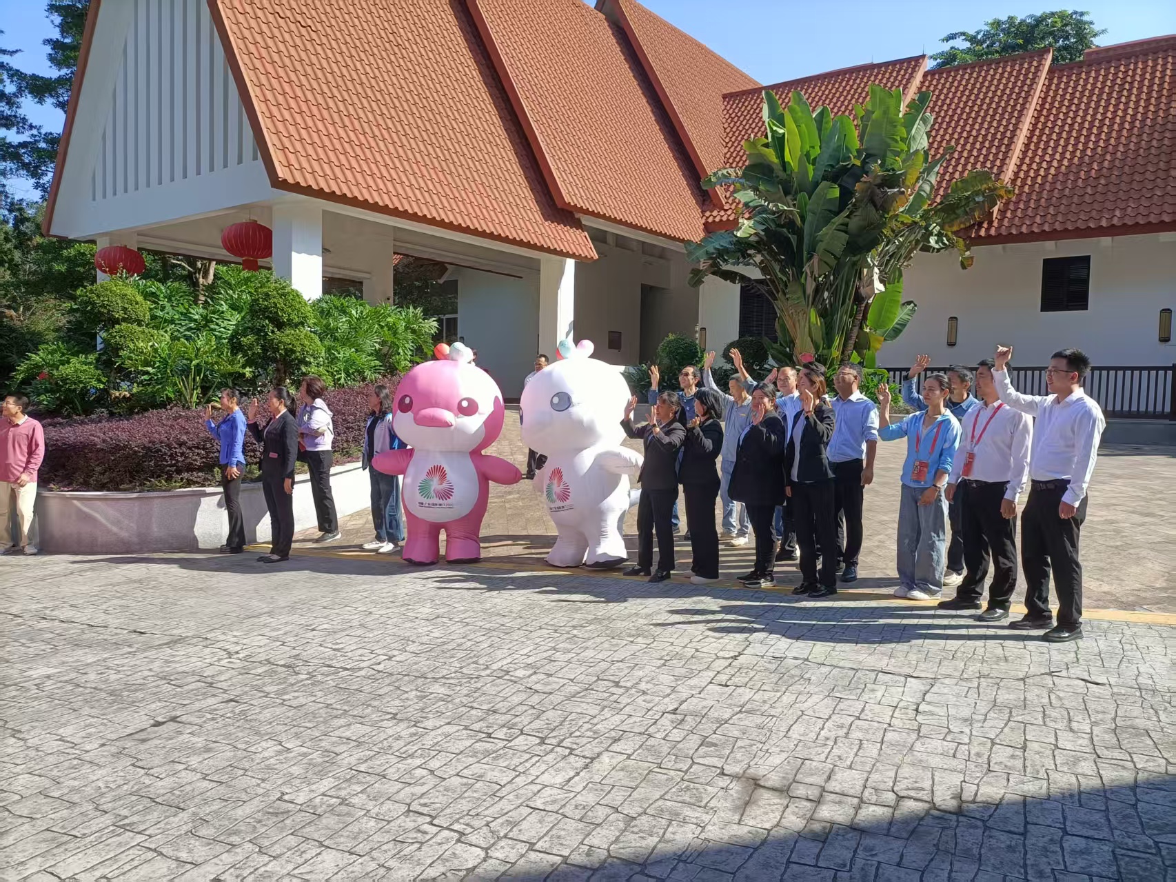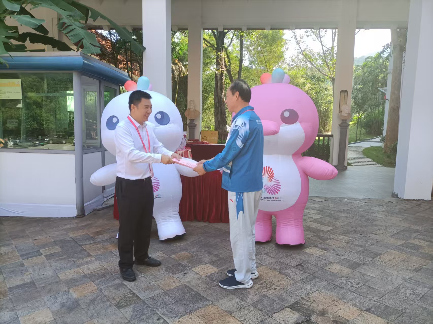 当日的云浮迎宾馆,处处洋溢着惜别与感恩的氛围。现场,两只憨态可掬的全运会吉祥物喜洋洋和乐融融在人群中穿梭,为离别的场景添上了一抹活泼的亮色。广东省曲棍球协会副会长丛德全将这封手写感谢信郑重递到宾馆负责人手中。他感慨道:“赛事期间,云浮的后勤保障从交通到餐饮,从住宿到服务,每一处都透着‘云浮用心’,这份支持我们记在心里!”信纸间、笔锋里的恳切谢意,成为云浮后勤保障团队 “幕后奉献” 的最佳勋章。