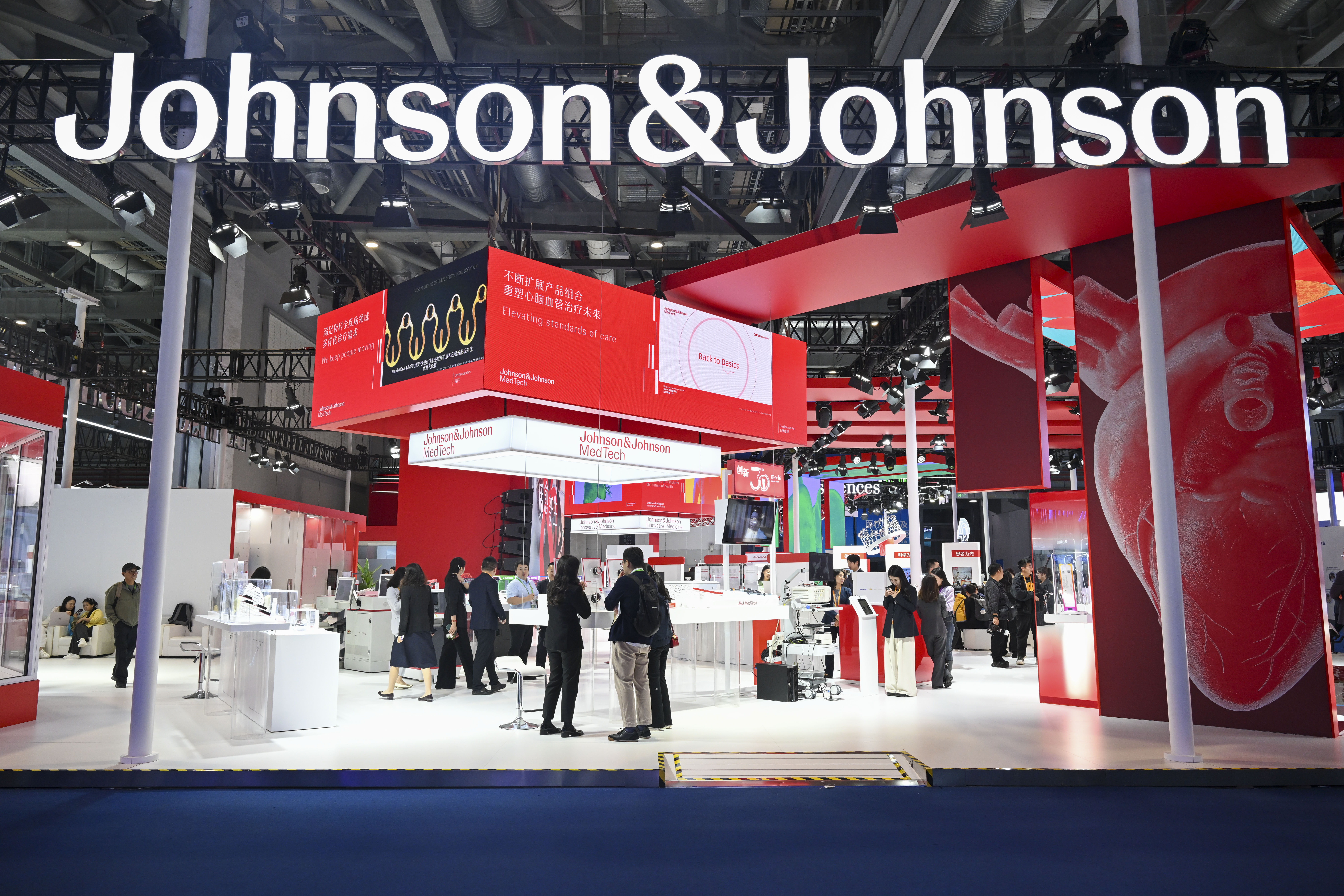 11月7日,观众在医疗器械及医药保健展区强生展台参观。强生是进博会八届“全勤生”。新华社记者 陈浩明 摄