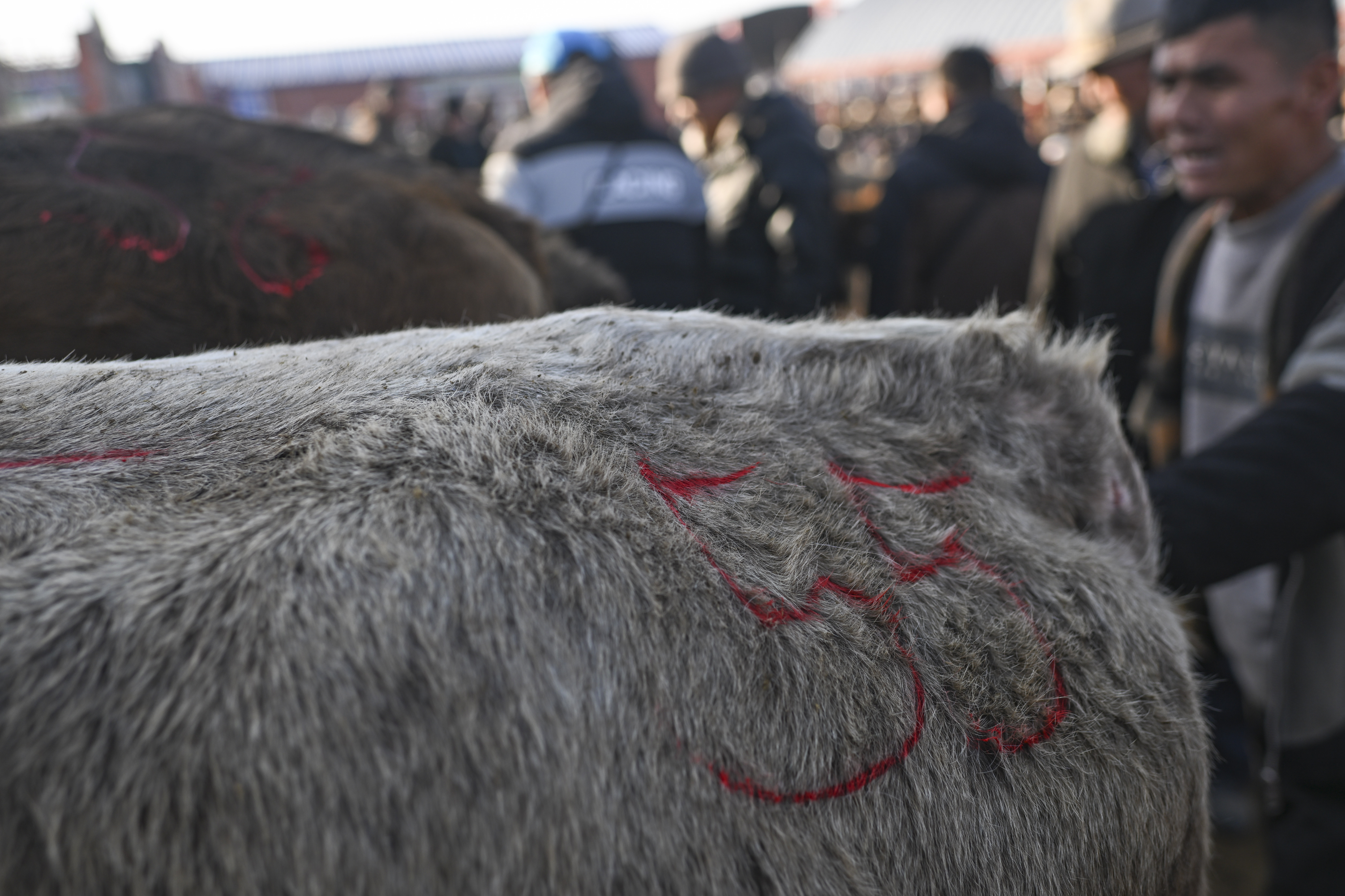 价格达成一致后,马军在选中的牛身上做标记,便于完成收购后装车转运。