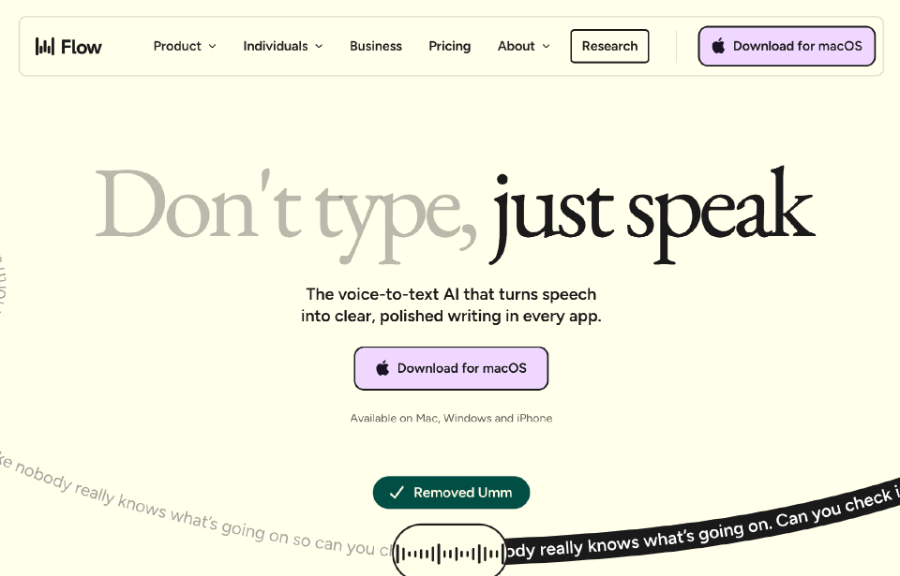 (AI语音输入产品Wispr Flow官网,目标是完全取代键盘式输入法)