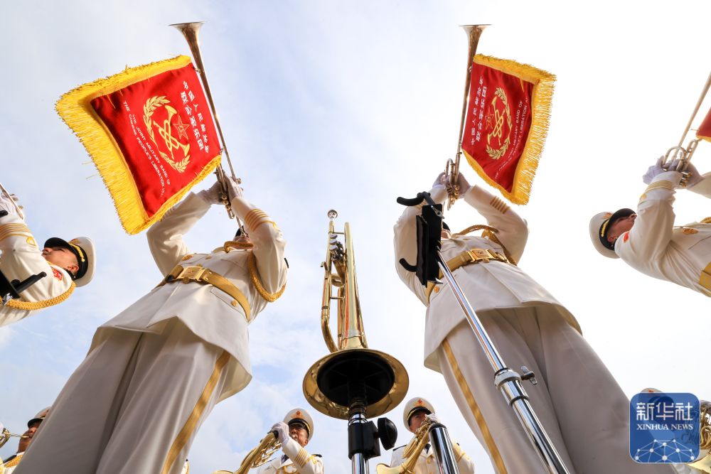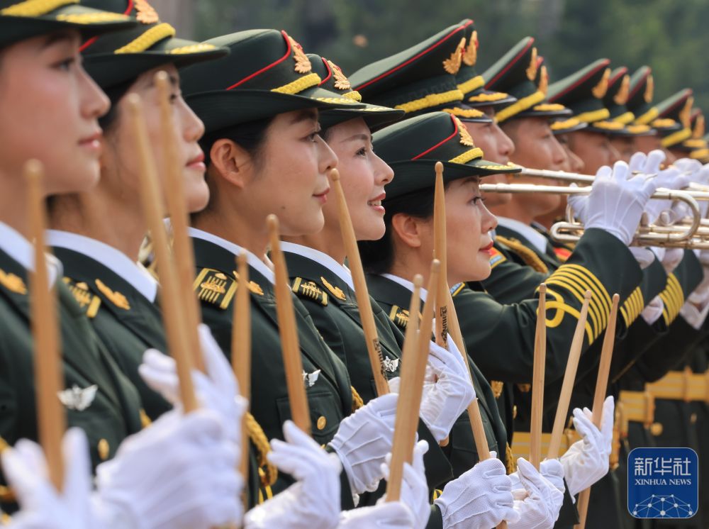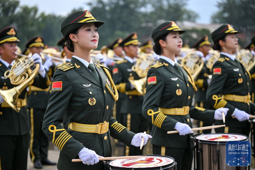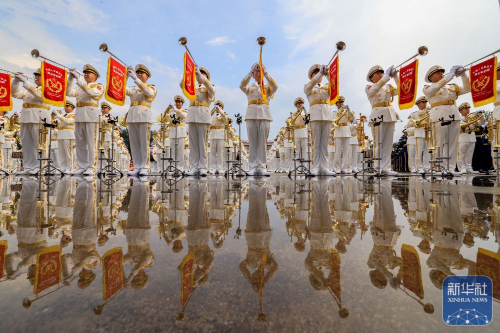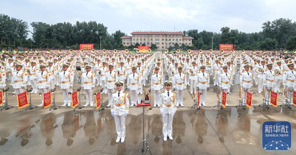 ↑ 中国人民解放军联合军乐团在进行训练(8月12日摄)。新华社记者张铖摄