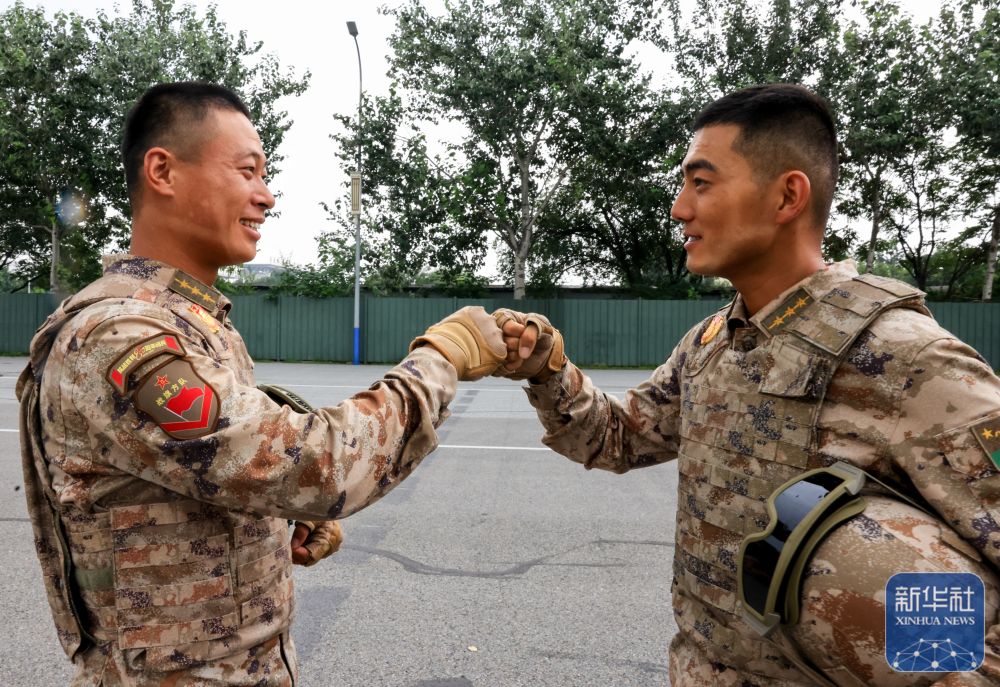 ↑ 参阅队员在进行训练(8月12日摄)。新华社记者张铖摄