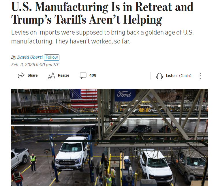 《华尔街日报》近日刊文指出,美国政府曾承诺通过加征关税和推出产业促进政策推动制造业复兴,开启“美国制造的黄金时代”。但最新数据显示,这一目标不仅尚未实现,美国制造业的整体态势反而持续走弱。
