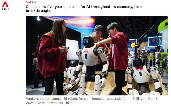 新加坡亚洲新闻台(CNA)报道称,中国全国两会召开之际,中国正在布局人工智能、量子信息、脑科学等前沿产业,将继续加快高水平科技自立自强。