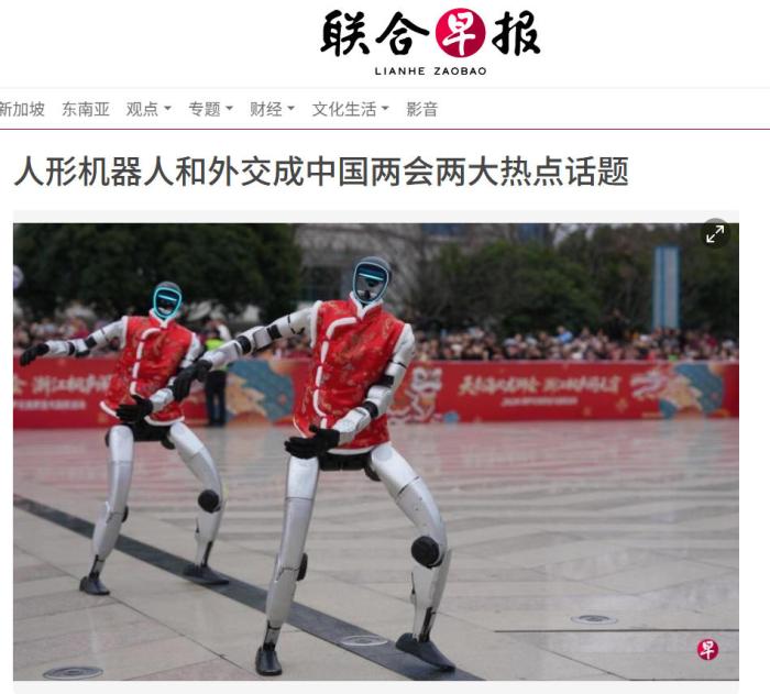 新加坡《联合早报》报道称,中国多家人形机器人公司在春晚舞台上的武术表演吸引全球目光,相关产业获得舆论高度关注,这股热潮延续至2026年中国全国两会上,不少人工智能相关的企业人士在会场外成为媒体格外关注的对象。