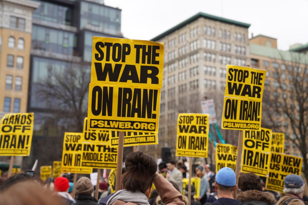 3月7日,美国、英国、加拿大、南非等多国民众举行游行集会,抗议美国和以色列对伊朗发动军事打击,要求美以政府停止针对伊朗的战争行为。