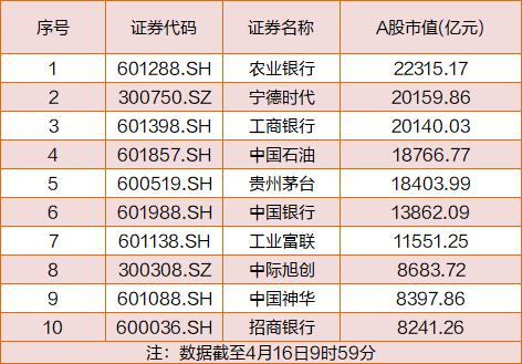 4月16日,宁德时代(300750.SZ)盘中涨幅扩大至6%,A股市值2.02万亿元;连续反超中国石油、工商银行跃居A股市值第二。