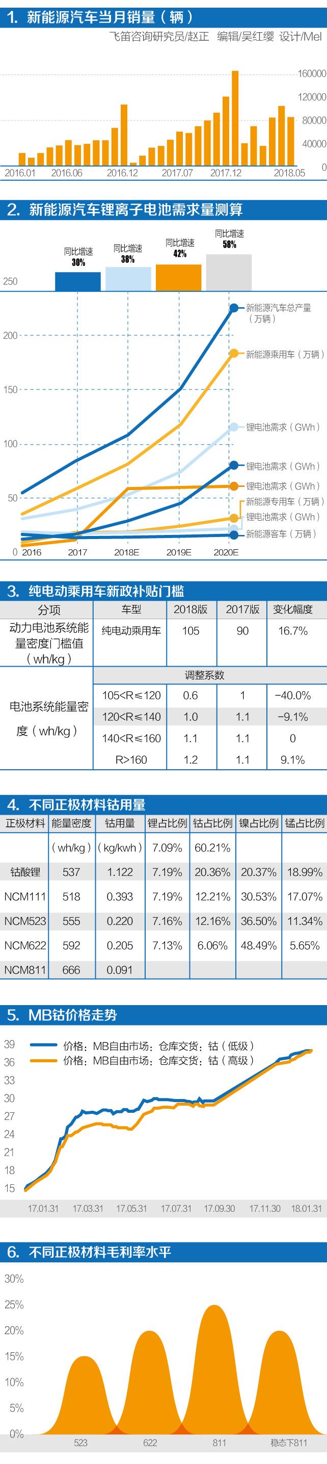 考虑到钴作为三元电池正极材料的重要原材料,其价格在2017年快速上涨,从年初的每磅15美元,上涨到年底的每磅35.5美元,涨幅达到145%;而且在进入2018年之后涨势没有停歇。