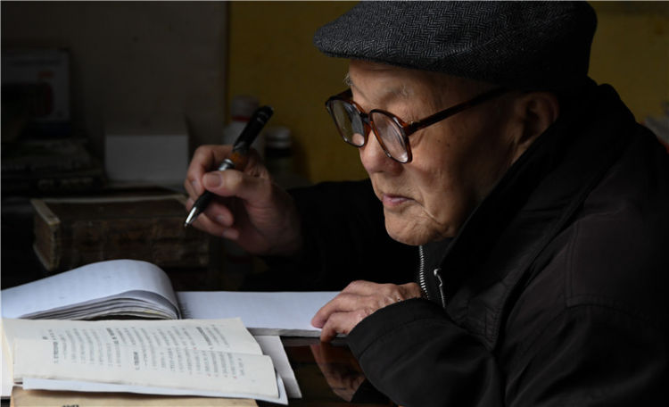 张富清在家看书学习(3月31日摄)。新华社记者程敏摄