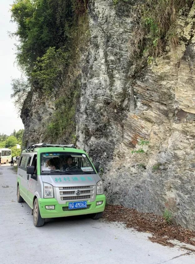 △“村村通”的小巴士贴着峭壁行驶。孙伟帅摄