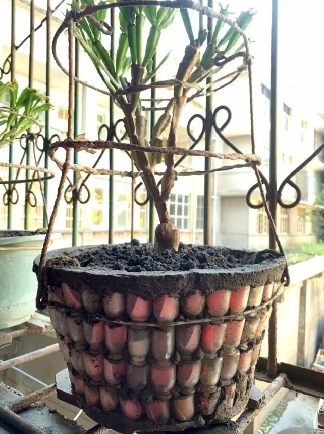 阳台,是张富清最喜欢待的地方之一。那里有他精心栽培的蟹爪兰,饱满的花苞挂在枝上,仿佛一觉醒来就会怒放。窗台上那几个“特制”的花盆,是他的得意之作,粘制的物料竟是他用剩的小玻璃药瓶。每个小药瓶中,张富清都塞上一张彩色小纸片,整个花盆都有了鲜艳的色彩。