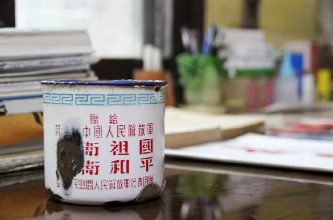 也许,在许多个阳光灿烂的日子,在许多个夜深人静的时候,张富清曾无数次深情凝视着这只陪伴他多年的搪瓷缸。凝视着它,仿佛就回到过去的岁月,听到隆隆炮声,看到那些牺牲的战友在冲他微笑……