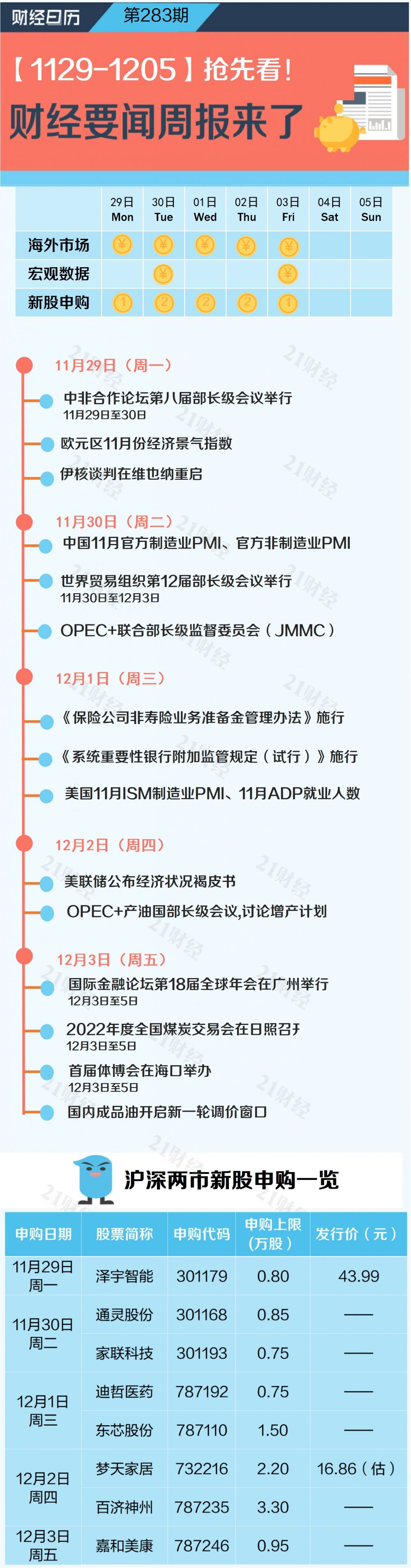 中国11月官方制造业PMI、官方非制造业PMI即将发布。
