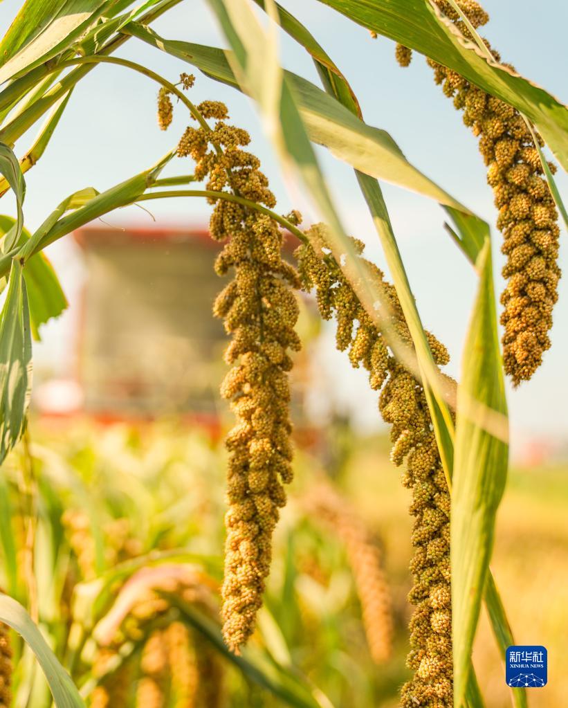 在山东省邹平市西董街道一种植基地拍摄的谷子(9月2日摄)。新华社发(董乃德摄)