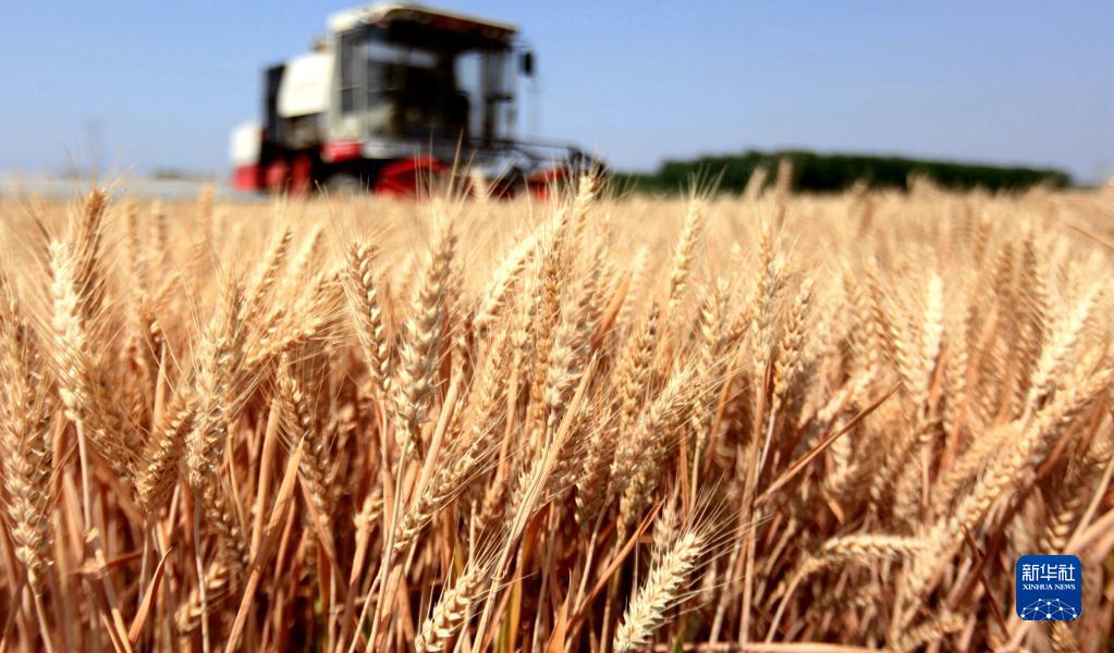 山东省临沂市平邑县农民驾驶收割机在田间收获小麦(6月8日摄)。新华社发(武纪全摄)
