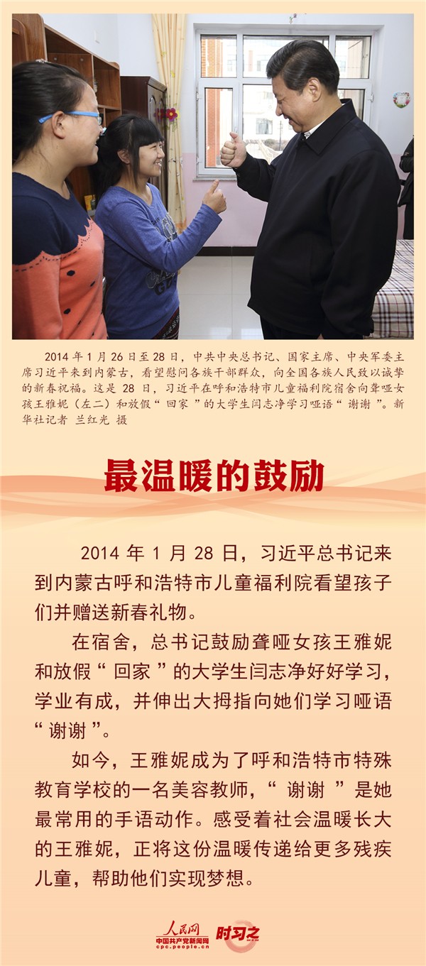 习近平总书记一直格外关心残疾人这个特殊困难的群体。看望呼和浩特市儿童福利院的孤残儿童,会见残疾人群体代表,考察2022年北京冬残奥会筹办备赛工作.....一幕幕温情画面,一个个暖心细节,激励着广大残疾人朋友活出属于自己的精彩人生。