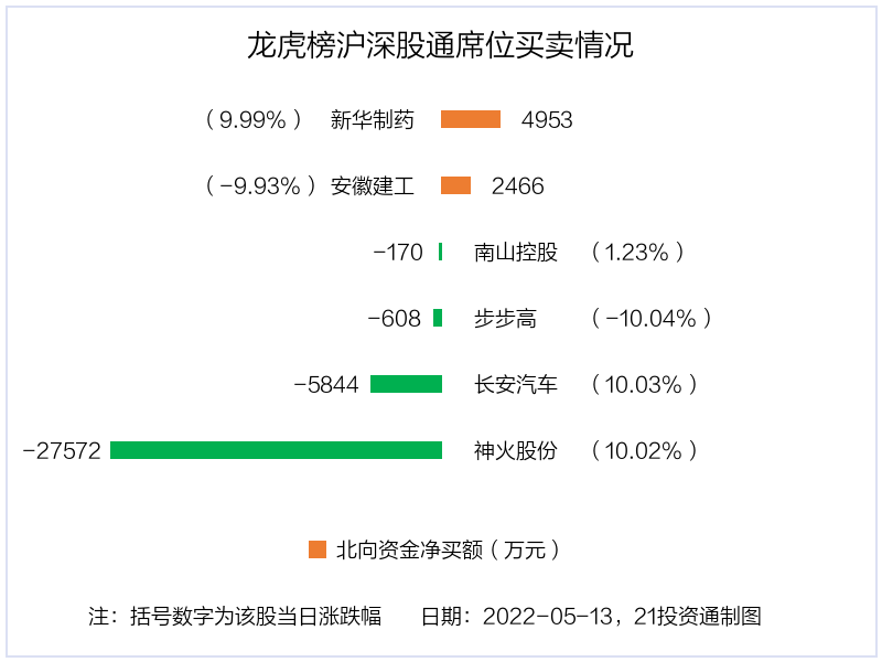 而龙虎榜中资金净流出最多的是神火股份(000933.SZ),被净卖出为3.59亿元,占总成交金额的13.57%。神火股份收盘上涨10.02%,换手率为9.67%。