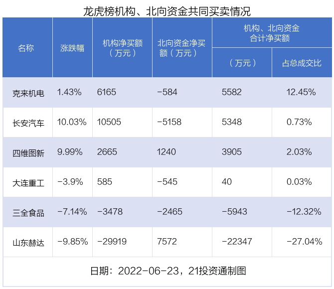 最新龙虎榜动向:长安汽车涨停,3.89亿资金抢筹北向资金却在抛售(名单)