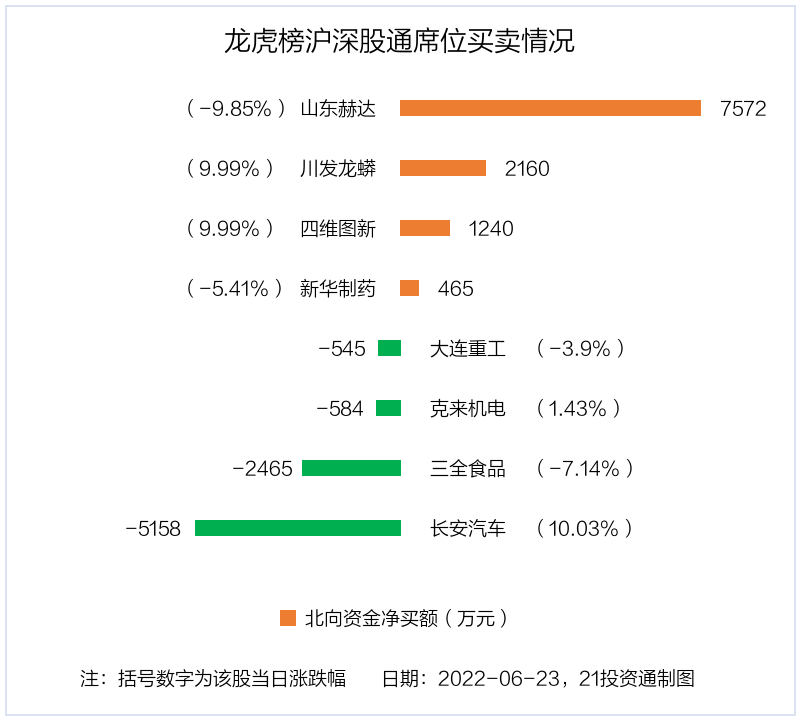 6月23日,北向资金参与龙虎榜中的个股共有8只,合计净买入2685.75万元。其中沪股通净卖出1 股,合计净卖出583.74万元;深股通净买入4 股,净卖出3 股,合计净买入3269.48万元。