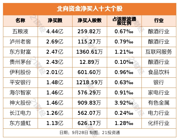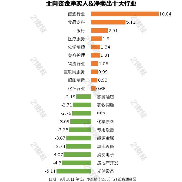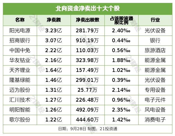 据21投资通智能监测,9月28日,北向资金净卖出38.4亿元,其中沪股通净卖出15.36亿元,深股通净卖出23.04亿元。