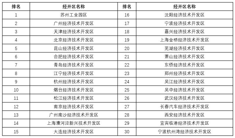 (来源:商务部公布的国家级经开区综合发展水平考核评价综合排名)