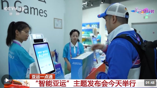 总台央视记者 陈昱:“智能亚运”不仅可以看热闹,更可以看门道。杭州亚运会期间推出了很多首创的科技应用。比如移动支付,亚运会期间,来自七个国家和地区的运动员和随队成员,可以通过使用本国的电子钱包,在杭州实现手机支付,可以说是杭州亚运会送给他们的一份电子礼物。杭州亚运会还推出了电子身份注册卡,探索电子签证的应用,提供便利、快捷的通关服务。