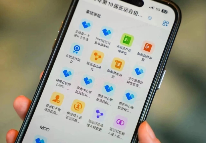 面对如此大的办赛队伍,如何能够有效地沟通,有序地组织赛事保障活动,是摆在亚组委面前的一个现实问题。2019年,亚组委与钉钉达成合作,首创“亚运钉”平台,集成在线沟通、人员管理、赛事培训、礼宾管理、交通组织、医疗急救、赛场监管等293款应用,并接入赛事综合指挥平台和各专项指挥平台,打通了办赛的堵点、痛点。