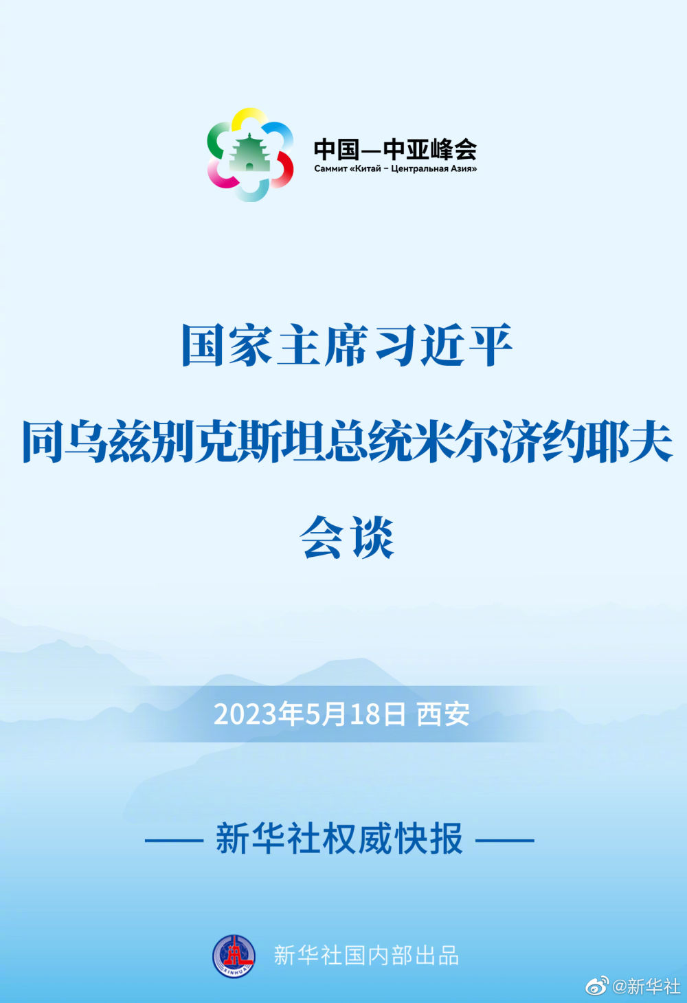 5月18日下午,国家主席习近平在西安同来华出席中国—中亚峰会并进行国事访问的乌兹别克斯坦总统米尔济约耶夫会谈。
