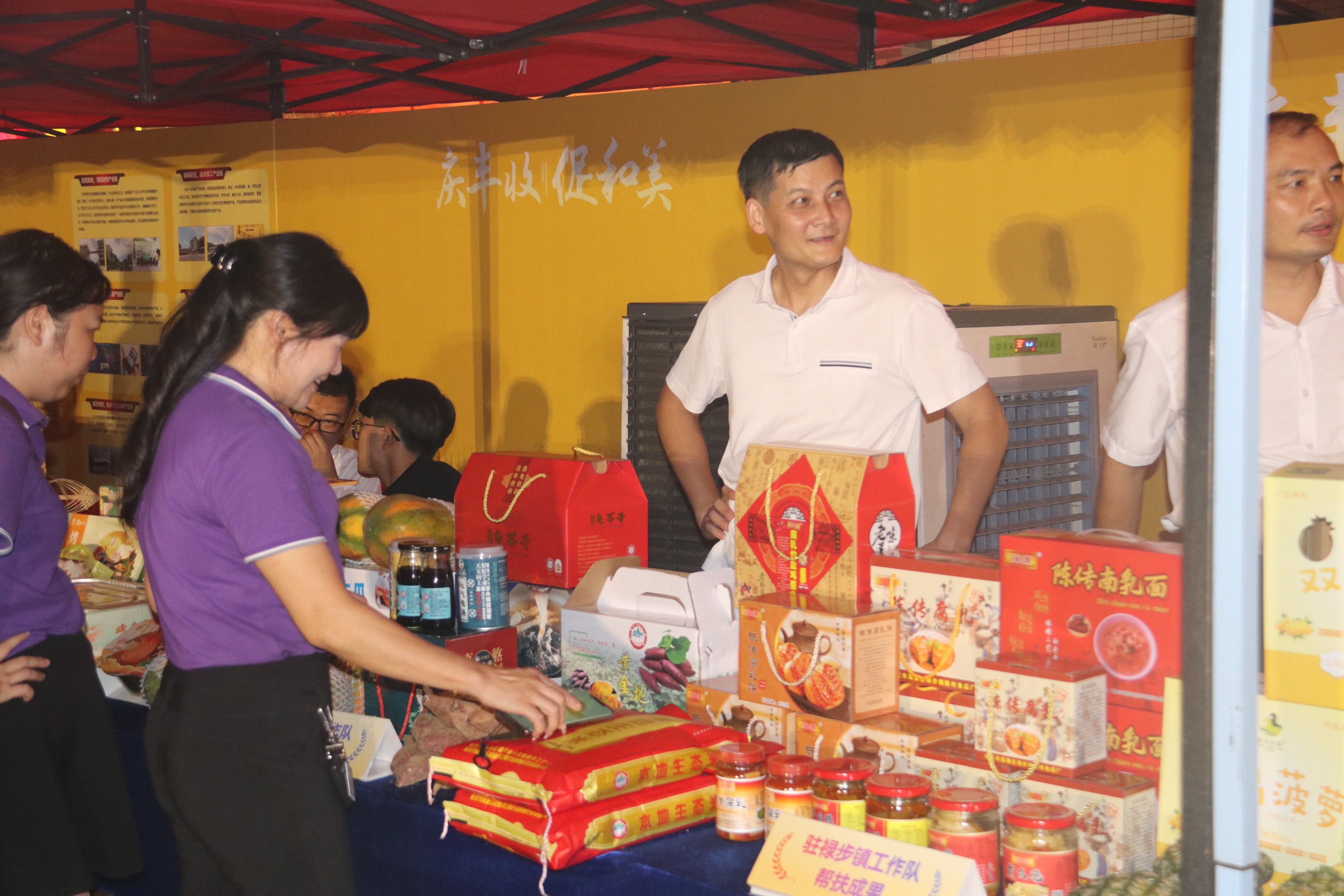 在电商直播展位,一个个小屏幕直播着现场画面:特色小吃新鲜出炉,热气腾腾,主播情绪高昂地一一介绍,并与观众亲切互动。本次活动专门设置农产品及农村电商展台,邀请农牧企业、农民专业合作社展销各乡镇优质特色农产品,现场烹饪新鲜食材供观众品鉴。电商企业在现场开展直播,推介各乡镇特色农产品,并将庆丰收的热闹画面同步传播到网络。