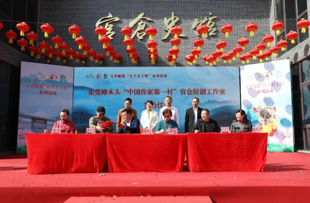 活动现场,樟木头镇官仓社区与王松、王十月、陈启文、雪漠、魏红花等作家代表签订驻创协议。作家村第一期驻创工作室有王松、王十月、陈启文、雪漠、江子、魏红花、丁燕、王虹虹、莫华杰、陈末、赵勤、王康银、刘芬、王一丁等14位作家入驻。