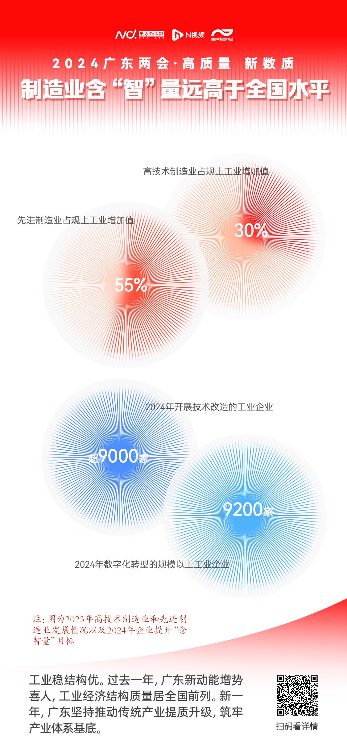 据悉,广东将继续深化传统产业提质升级、推动人工智能深度赋能新型工业化,力争2024年推动超过9000家工业企业开展技术改造、9200家规模以上工业企业数字化转型。