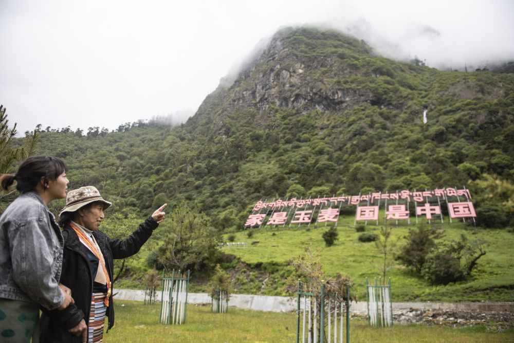 玉麦乡山坡上的标语(2022年6月1日摄)。新华社记者张汝锋摄