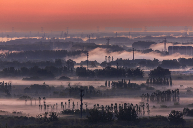 绝美!北京朝霞遇到平流雾 中式意境美学具象化了