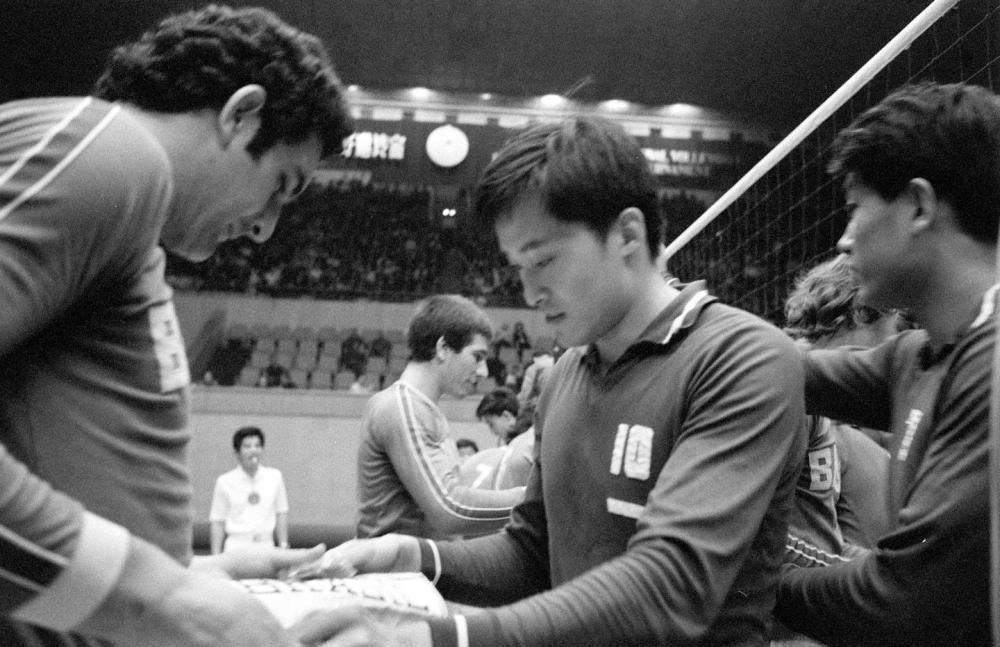 1978年5月18日至25日,北京国际排球友好邀请赛成功举行。中国队与巴西队运动员在比赛前互赠礼物。