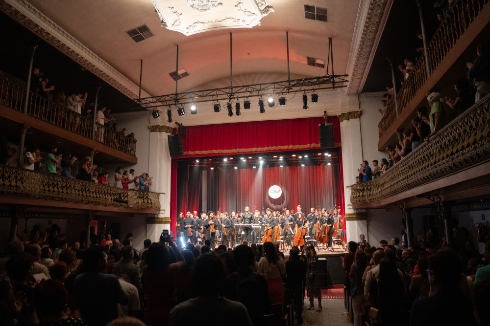 2024年6月3日,在巴西北里奥格兰德州纳塔尔举行的“庆祝中国巴西建交50周年——巴西东北部中巴音乐巡演(纳塔尔场)”音乐会上,观众起身为表演者鼓掌。本场音乐会上,中国和巴西经典乐曲相互穿插,让观众赞叹于两国音乐之美。