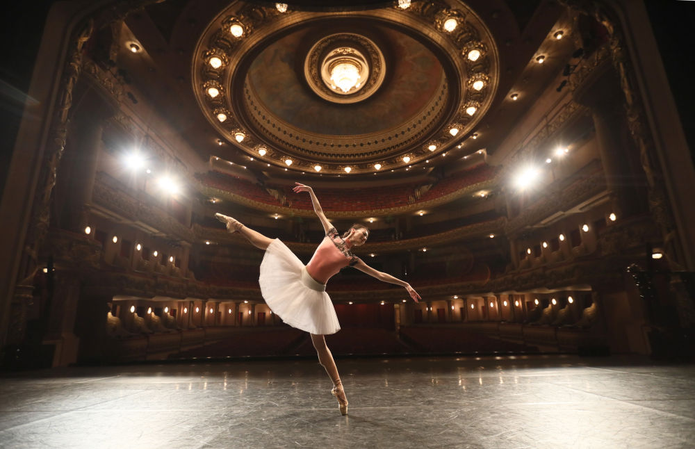 2019年5月24日,中央芭蕾舞团演员方梦颖在巴西里约热内卢市政剧院排练。中央芭蕾舞团携《大红灯笼高高挂》来到巴西,为当地民众献上带有浓郁中国元素的精彩表演。