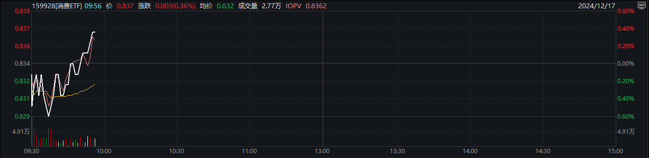 中央财办:明年将实施提振消费专项行动,消费ETF(159928)盘中翻红,重庆啤酒涨超1%