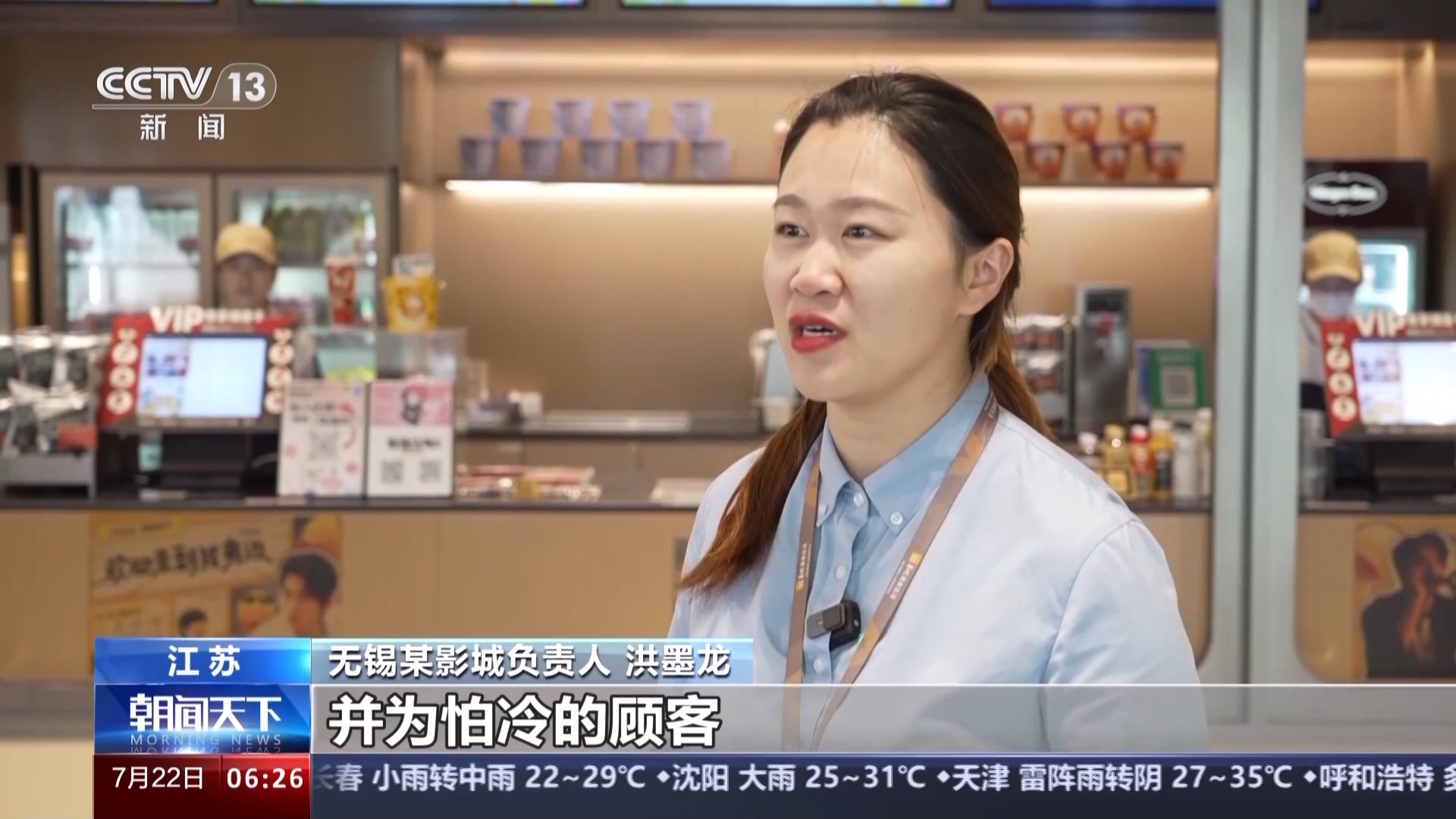 无锡某影城负责人洪墨龙:首先我们保证影厅的温度适宜,并为怕冷的顾客提供免费干净的毛毯。我们还会通过现场的陈列布置,打造主题观影氛围,让观众在观影过程中有更多的参与感和互动体验。