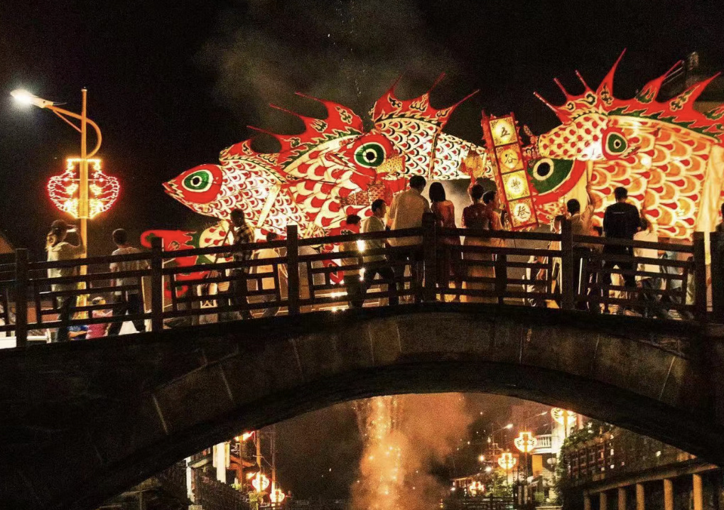 鱼龙起,福愿至,汪满田鱼灯距今已有600多年的历史,每到传统佳节期间,伴着鼓点与烟火,大鱼灯“鱼贯而出”,在主街游曳、嘻闹、翻飞,流光溢彩、惟妙惟肖,古诗词中的场景真的存在!