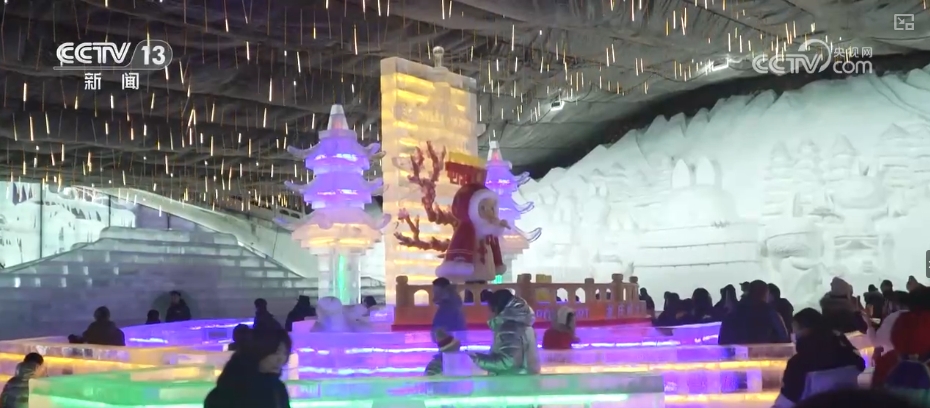 这些作品在传统冰灯艺术的基础上,巧妙融合了西游、仙侠等热门IP元素。作为每年保留项目的冰川飞瀑,2025年也新增了气膜灯和精品雪雕作品,吸引大量游客驻足拍照。