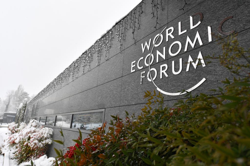 这是2024年1月9日在瑞士日内瓦拍摄的世界经济论坛标识。新华社记者连漪摄