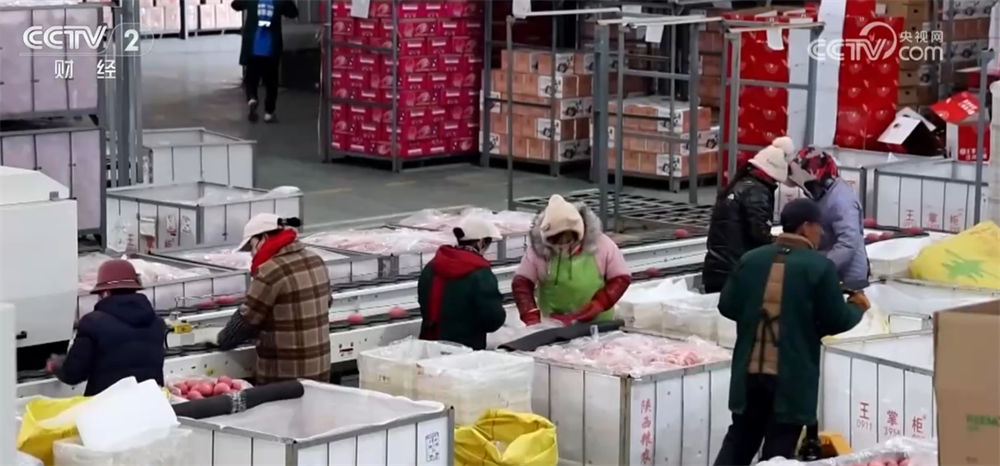 在延安洛川县,一大早,装载苹果的冷链车已排起长队。为了抓住春节销售黄金期,销售企业策划了年货节、春节特供等系列促销活动,线上线下同步推进,全方位促销。