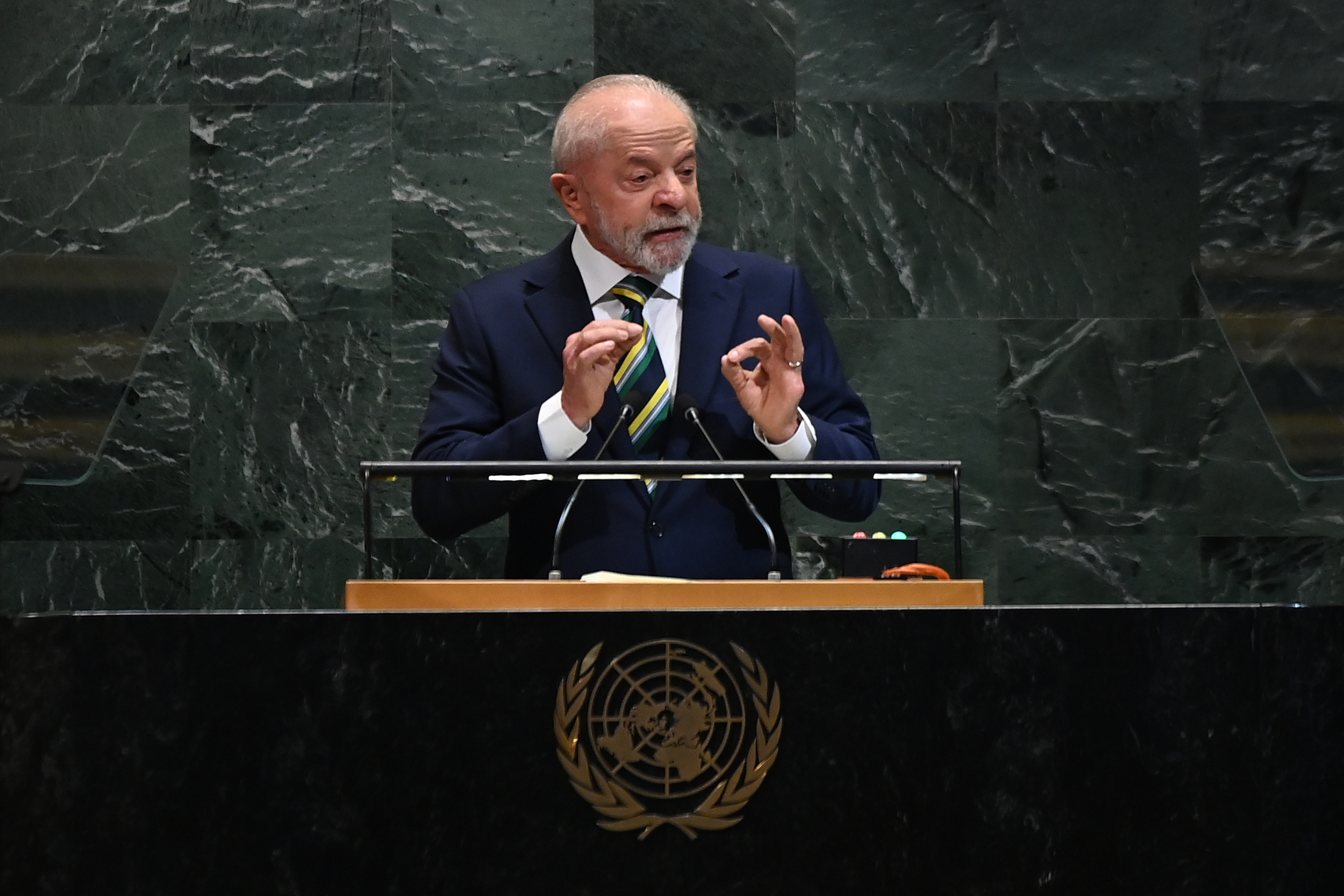 9月23日,在位于纽约的联合国总部,巴西总统卢拉出席第80届联合国大会一般性辩论时发表讲话,强调国际社会应捍卫多边主义和民主制度、反对单边制裁和干涉主权国家,并呼吁维护拉美地区和平。新华社记者李睿摄