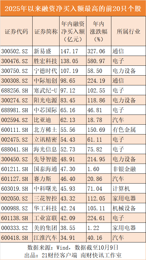 融资余额再创新高!融资客扫货名单曝光,科技龙头股年内涨超5倍