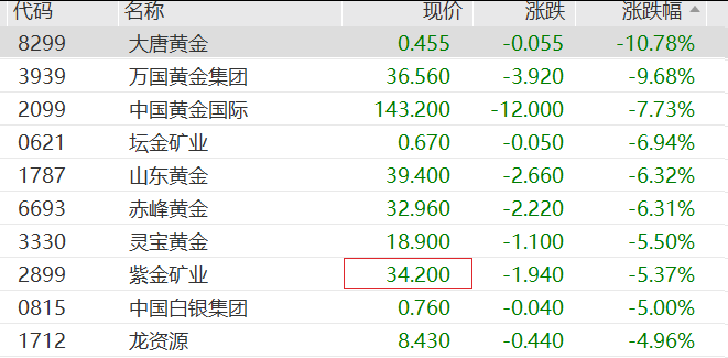 金价失守4000美元!AH黄金股大跌,西部黄金跌8%,大唐黄金跌10%