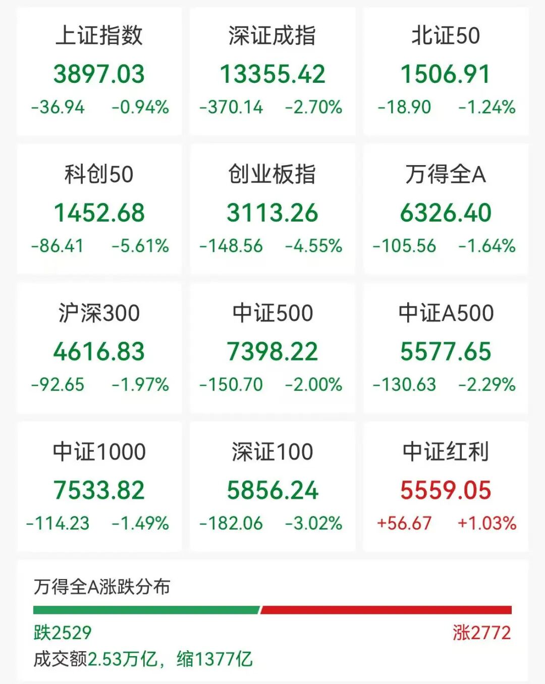10月10日,A股市场全天震荡调整,三大指数集体下跌,截至收盘,沪指跌0.94%,深成指跌2.70%,创业板指跌4.55%,市场成交额2.53万亿。